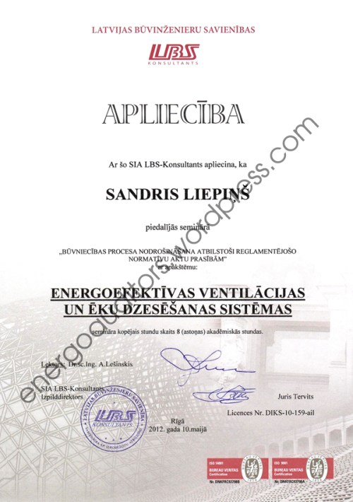 sandris.liepins@inbox.lv; tālr.: (+371) 29390456. Tehniskā apsekošana, būvju tehniskā pārbaude, ekspertīze, energoaudits, energoefektivitātes aprēķins, energosertifikāts, energoefektivitātes pagaidu sertifikāts, termogrāfija, termoaudits, monitorings, būvprojektēšana, ugunsdrošība, konsultācijas